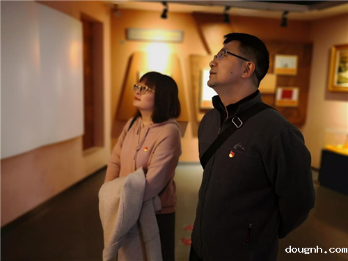 党员同志们驻足于一张张资料与各种纪念品前,认真观摩,追寻着先辈们的英勇足迹和光辉历史,讨论着伟大新中国的成立多么来之不易。