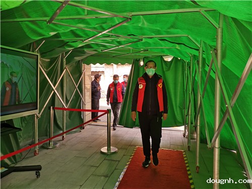 上午9点10分,“学生”按照1.5米安全距离,开始在校门口有序排队通过红外测温仪检测体温,现场发现一名学生体温异常,监测员立即将该学生带到临时隔离区原地等待,使用对讲机呼叫校医,同时向学校疫情防控小组汇报。学校校医人员赶赴现场对发热学生进行二次检测,如体温依旧异常,即刻带领该学生进入隔离室,由校医再次用水银温度计对学生体温进行检测,如再次异常则立即联系指定医院和管城区疾控部门。消杀人员立即对该生接触过区域进行全面消杀。