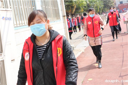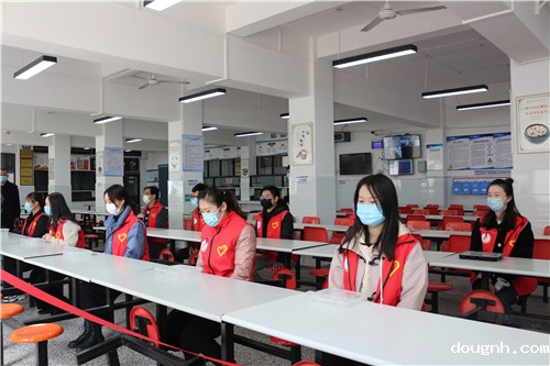 体温检查结束,全部正常后由班干部负责带领同学排队进入餐厅就餐。