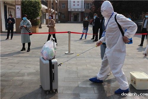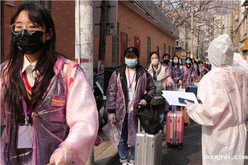 额温枪测温、红外线热成像仪测温、体温登记、行李箱消杀,脱去一次性雨衣、手套、口罩,手部消毒,消毒湿巾擦拭、带上新的口罩……这是18新利app每一位学生进入校园的必经流程。 “虽然之前班主任已经反复提醒我们入学的流程了,但没想到入校检测这么严格,不过,我也更放心了。” 音三三班的胡书浩同学说。