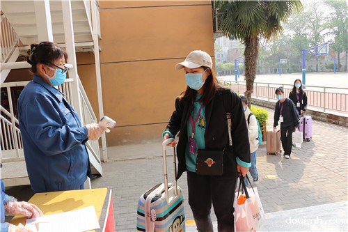 “许诺,早上好!欢迎回家!”“老师,您辛苦啦!……”口罩、防护服隔开了距离,但隔不开爱。时隔3个月后的第一次见面,高三年级音乐一班许诺同学开心地与班主任胡金丽老师打招呼。