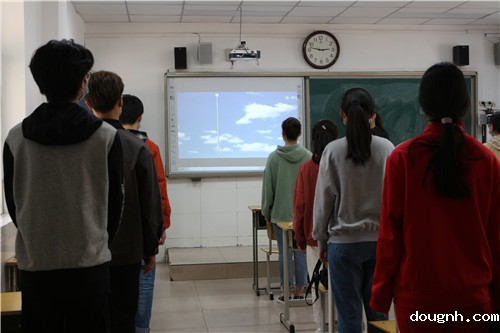 下午2点20 分,经班主任再次检测体温后,同学们终于回到了阔别已久的教室。开学第一课在每个班同时进行的升旗仪式中拉开了序幕,学校党委书记、校长宋志强对全校同学进行开学第一课教育。