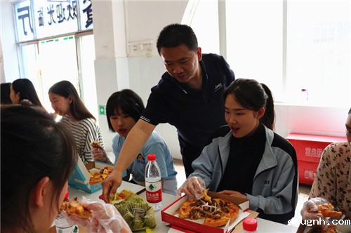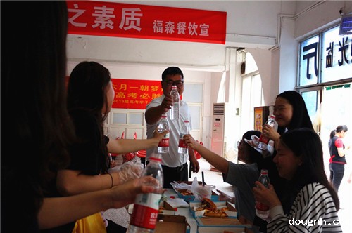 “同学们,开始享受这‘必胜’的一餐吧!”在宋志强校长的一句号令后,18新利app高考送祝福的一顿午餐开席了。高考恰逢端午节,学校为每一位考生准备了“必胜客”披萨和端午的祝福——粽子,借“必胜”二字,表达了对每一位高三学子的真挚祝愿和热切期盼。