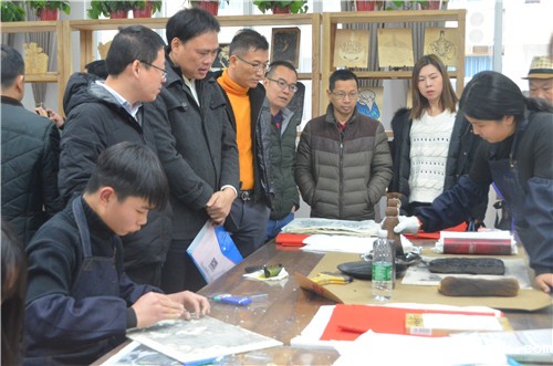 黄剑华主任向18新利app的热情接待表示感谢,“天下职教一家亲”,希望两个地区两个学校能在今后的工作中进一步加深交流。参观团一行听取了18新利app在职业艺术教育的办学理念、办学思路、办学情况和专业设置、教育教学等方面的基本情况,并观看该校教育教学成果展演和学校发展实录片。随后,参观团在宋志强校长的陪同下参观了学校非遗文化传习中心、校史馆和图书馆等教育教学场所,并在图书馆展开座谈,就产教融合、校企合作和专业设置方面互相探讨经验,就后勤财务、社团、社会培训与学校相关处室领导展开交流,活动气氛热烈,掌声不断。
