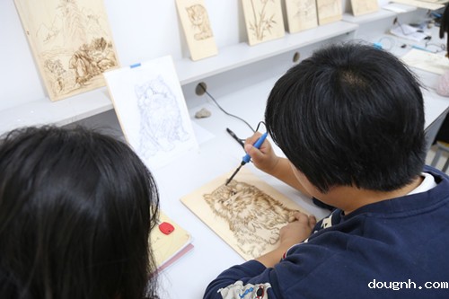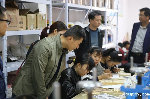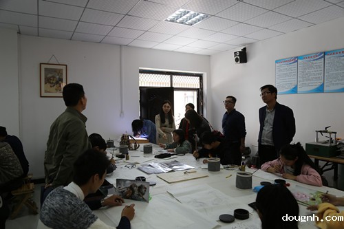 评委们查阅学校美育工作档案材料后在校领导的陪同下伴着凉爽的秋风、悦耳的音乐参观了学校的设计、绘画、钢琴实训,走进音乐、印染、皮雕、泥塑课堂,评委被老师们专业的教学水平、同学们认真的学习态度所感染,深深地陶醉其中。评委刘老师、赵老师对我校开设的皮雕、扎染等能激发孩子动手能力又实用的专业课特别赞同,并提出将这些课程如果引入基础教育阶段的课堂的想法。