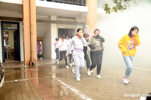 当日上午10点,消防演练准时开始。师生们伴随着蒙蒙细雨,在广播播报火灾警报后,由疏散老师指引下迅速撤离火灾现场。最后,全校1000余名学生用了四分钟的时间在操场集合完毕,吴老师对此次演练进行总结讲话。