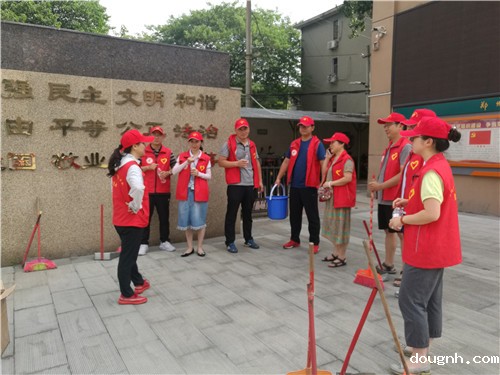 上午8:30,18新利app的党员队伍们在鲜红的党旗带领下,浩浩荡荡出发了。他们来到熊耳河同庆里附近的小游园,撸起袖子干了起来,从打扫路面落叶到清理绿化带中的塑料袋、果皮、烟头,从摆放乱停乱放的共享单车到清除墙面的小广告,志愿者们不放过任何卫生死角。在近38度的高温酷暑下,志愿者们不一会儿就全部汗湿衣襟,但却没有一个人退缩。他们的热情和认真,赢得了过往街坊邻居的纷纷称赞。