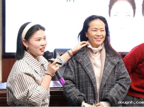 在美妆教学环节,徐一鸣邀请女教职工上台体验,从底妆、眼妆、发型等环节,体验职场妆容重点。活动现场,女教职工们聚精会神的聆听,现场互动频繁,气氛轻松愉悦。