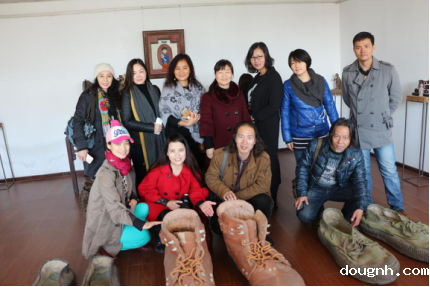 随后又参观钞氏兄弟陶艺工作室,钞氏兄弟对事业的坚持真的令人佩服且羡慕不已。钞子艺,钞子伟,双胞胎兄弟,河南南阳人,职业艺术家,同为中国美术家协会会员,中国雕塑学会会员,中国工艺美术学会雕塑专业委员会会员。毕业于河南南阳理工学院艺术系,先后在中央美术学院学习。现工作生活于北京 。南阳台电视台、河南电视台、中央电视台分别作过专题报道。个人专辑数本,在上百个刊物上发表作品、文章等。最为震撼的是他们做的一系列的废旧军鞋,一双鞋带一个鞋子上的小布丁都用材质表现的淋漓尽致。