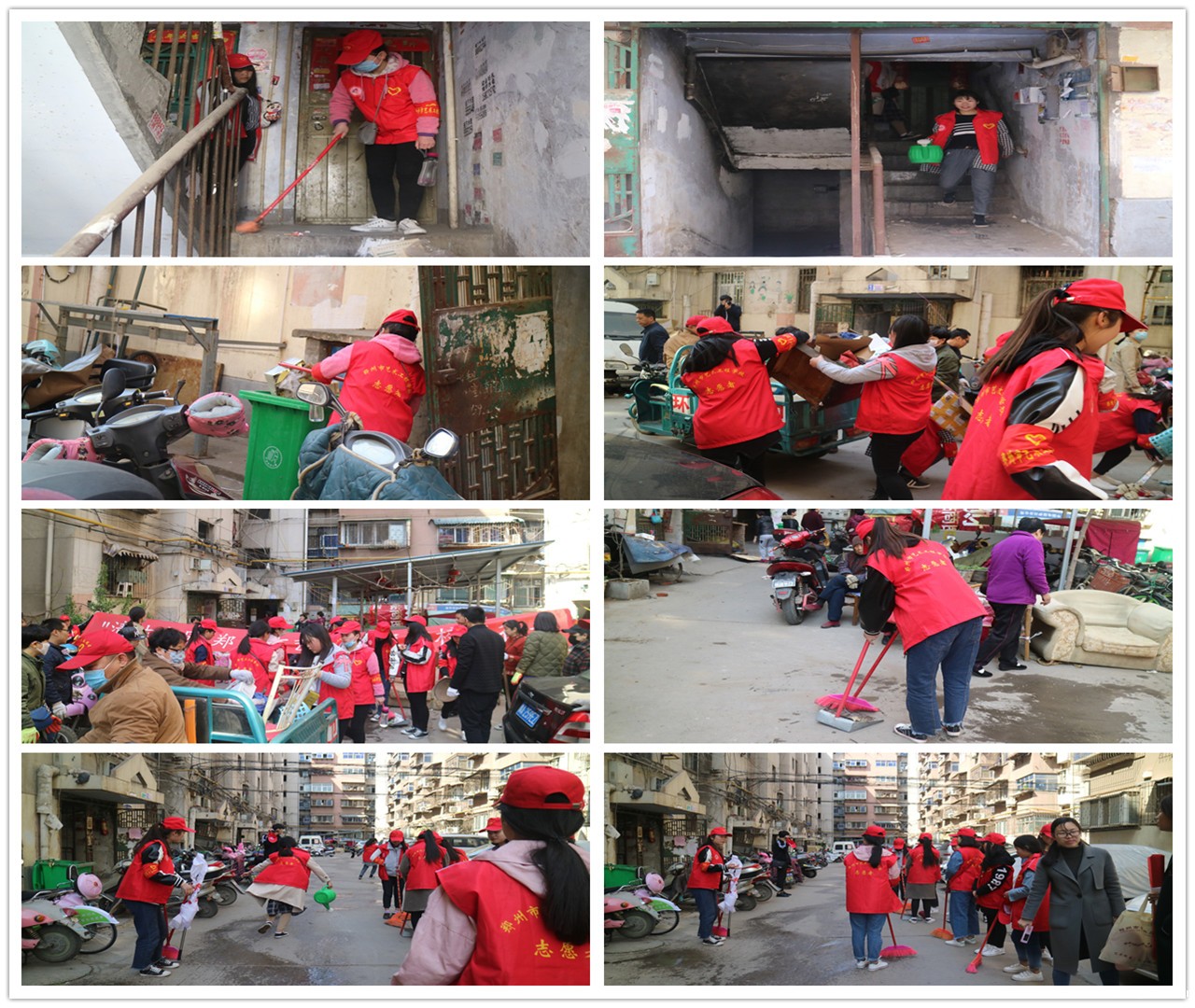 上午8点50分,小红帽志愿服务队到达南关办事处,简短的启动仪式后,小红帽们在社区工作人员的带领下前往制定活动地点花园村社区。简单分工之后,小红帽们就立刻投入到对小区20栋楼的环境卫生清理中去。活动中,同学们认真清扫楼梯上的废纸、塑料袋、饮料瓶、烟盒、烟头、小广告等垃圾,并将垃圾扫到一楼垃圾桶中。经过三个多小时的清理,每层的垃圾全部被清理干净。尽管社区赃物多,物品摆放杂乱,还刮着大风,但是小红帽的干劲儿十足,充分展示了当代中职生不怕苦、不怕累和团结协作的精神。社区居民纷纷对大家的行动竖起了大拇指,并对志愿者无私奉献、服务社会的精神表示钦佩。