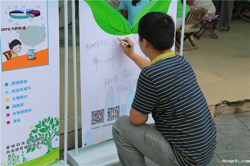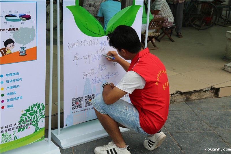 为防治大气污染,改善我市环境,8月29日早上,在管城区法制公园,郑州市艺术工程学校的小红帽志愿者们积极参与到环保宣传进社区宣传活动。在活动中,他们通过宣传海报、拉条幅,发倡议书、现场签字加入大气污染志愿队伍、环保相关知识宣传、发放宣传资料等方式积极为周边居民群众广泛宣传环保方面知识,号召广大群众要提高环境保护意识,自觉参与到环境保护工作中来,为营造舒适、和谐的人居环境贡献自己的力量。