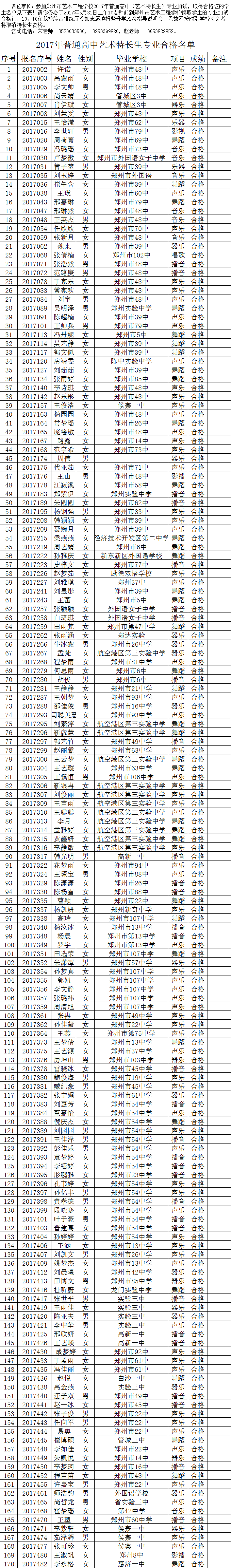 2017年郑州市艺术工程学校(普高班)艺术特长生专业合格名单