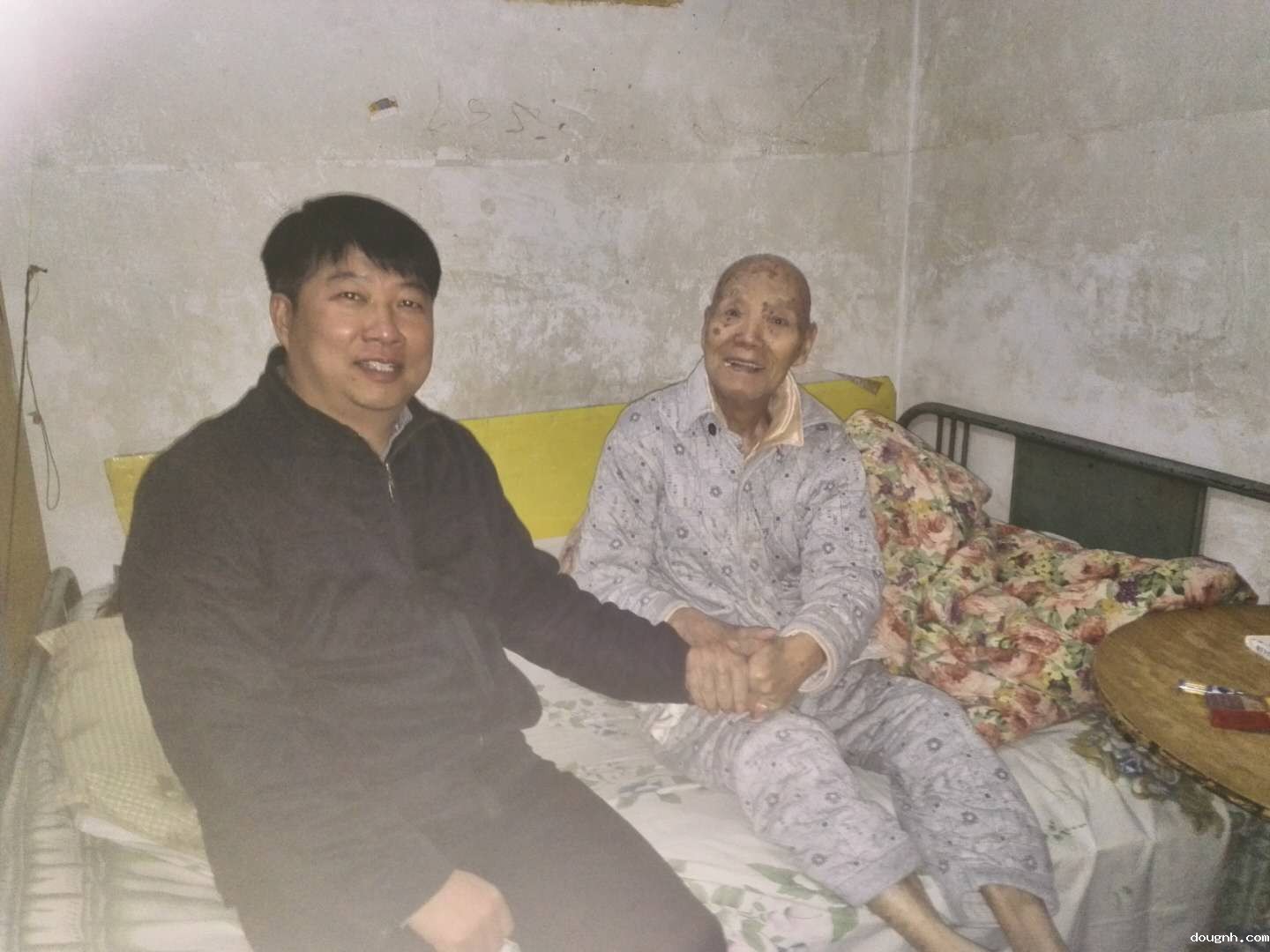 校长宋志强与97岁高龄的离休老教师成庆祥合影