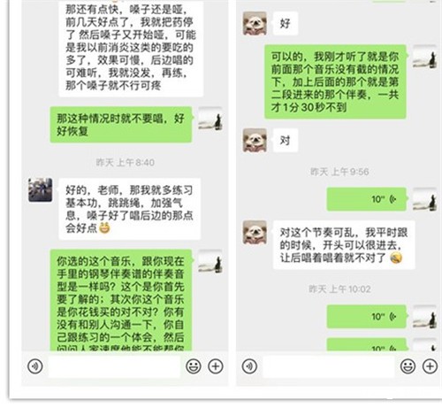 14:30开始上课,先讲评作业完成情况,然后进入新课的学习。由于声乐教学的特殊性,为了达到教学效果,利用视频的方式对学生进行一对一指导。