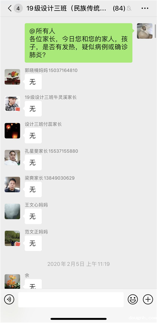 早上6:00起床,给家人准备早餐,6:30准时打开电脑,登陆钉钉、QQ、微信,开始督促学生发送身体健康情况,7:15分之前将相关表格发送给学校负责人。