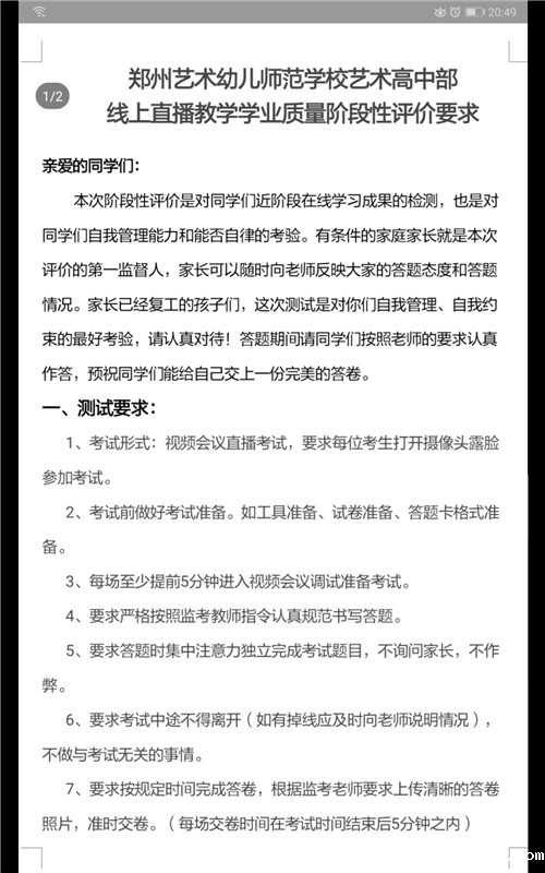 受新冠肺炎疫情的影响,教育部要求“停课不停学”,各个学校都积极探索线上教学模式,18新利app是最早一批开展线上教学的学校之一。经过将近两个月的线上教学,在不断的实践总结中,学校积累了宝贵的教学经验,形成了“直播+互动” 的教学模式,“学科教师+学习小组”的管理模式,“五位一体”的德育模式,以及“以学定教,以教导学”的课程设计理念。线上教学的新颖和有趣极大地激发了学生的学习兴趣,线上教学老师的认真和负责也赢得了家长的一致好评。为了检验这段时间的线上教学效果,评估学生的学业水平,也为下一阶段的教学定方向、做调整,3月28日和29日18新利app艺术高中部举行了线上考试,校领导高度重视,学校师生严肃对待。