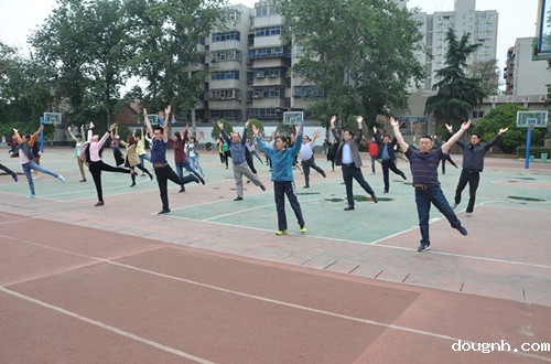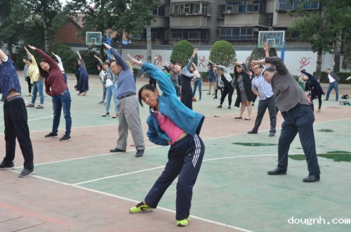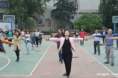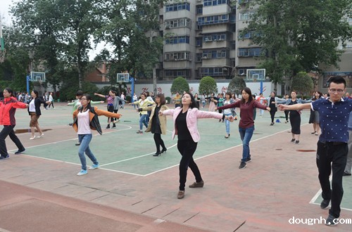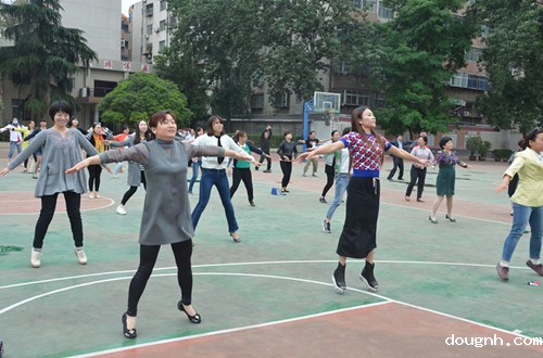 据悉,第九套广播体操是2011年开始推广的,它动作优美、简单易学,在缓解教师们教学压力的同时也舒展了身心。是一套更符合现代人锻炼方式的全民健身操,它在动作幅度和运动量上比上一套都有增加,其最大的特点就是新增了头、颈、肩的动作。做本套广播操对于长时间在办公室办公的老师们具有较强的针对性保健作用,受到老师们的热烈欢迎。