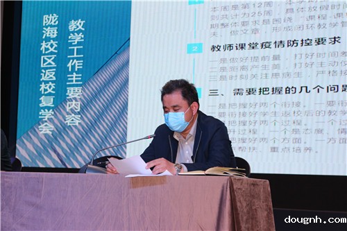 会议首先组织全体教职工观看了教育部召开的学校疫情防控专家报告会视频。通过观看视频,教职工对国际、国内疫情形势有了更加清晰的认识,同时认真学习领会了钟南山院士、李兰娟院士、张文宏教授等医学专家提出的校园开学以后疫情防控的意见和建议。