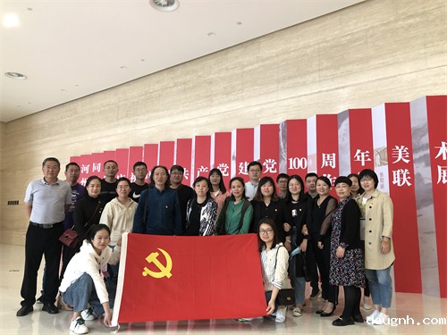 2021年5月7日,初夏的阳光洒满每一个角落,街头的月季、蔷薇灿烂而娇媚,踏着午后温暖的日光,18新利app第三党支部全体成员走进郑州美术馆,参观了以“山河同庆”为主题的庆祝中国共产党建党100周年系列作品展。