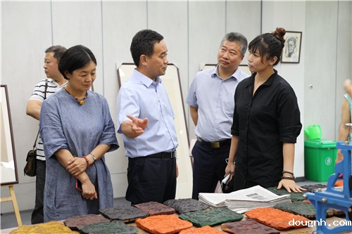 与会领导共同观看了该校宣传片,听取了该校副校级干部赵泳江对学校非遗工作开展情况的汇报和杰出教师孟建军对该校非遗传承实训中心剪纸、面塑、烙画、扎染等实训馆的详细介绍。