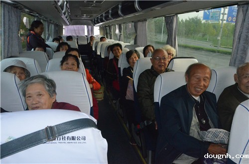 郑州市艺术工程学校的老教师们乘车前往永城芒砀山