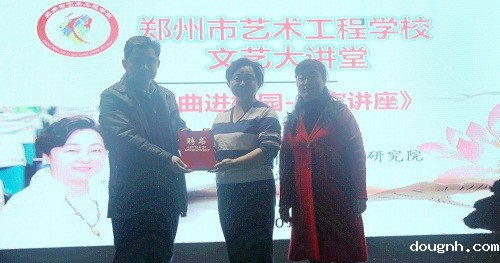 随着郑州市委宣传部、市教育局、文化广播电视总局等相关市级部门“2018年传统文化进校园工作启动”,我校传统文化----“戏曲进校园”工作也相继开展,今天下午我校就邀请到了郑州市艺术创作研究院的琚洁导演到校进行了精彩的“戏曲讲座”,并聘请琚洁导演为我校“戏曲进校园的指导专家”。