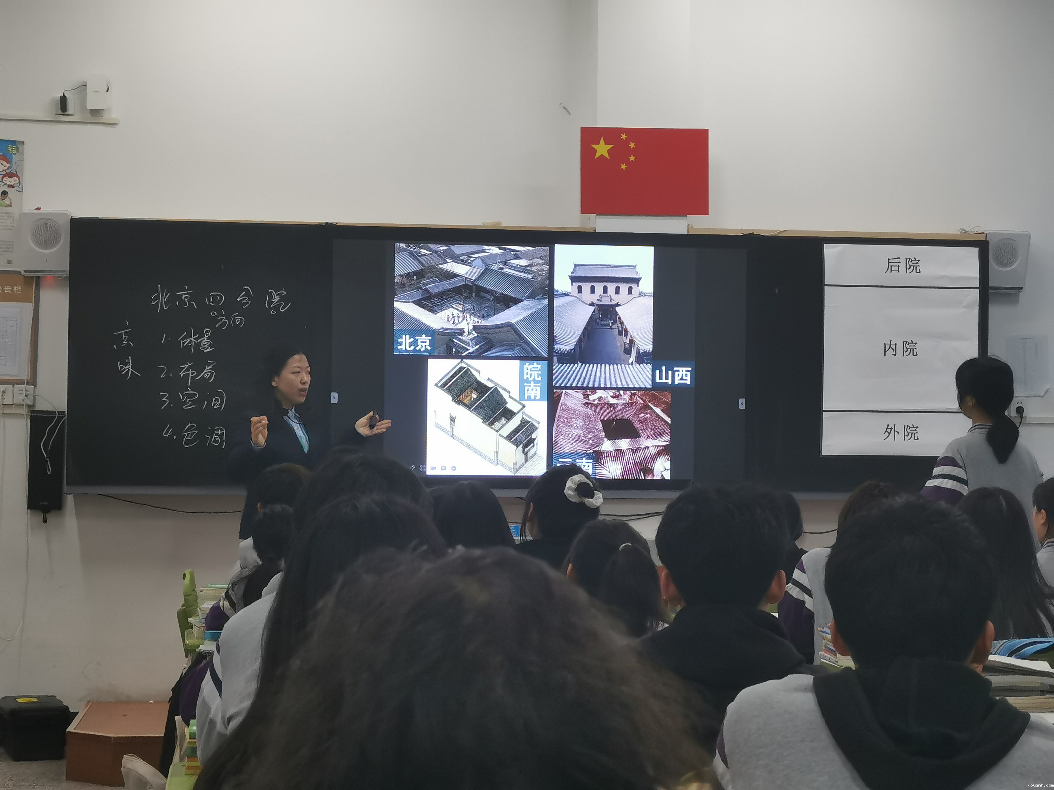 来自美术设计与制作专业的邱勤老师,为听课师生们带来了一节文化气息浓厚的《北京四合院》美术欣赏课,通过讲述北京的四合院文化,利用影像、音乐等手段让听课师生们感受到了北京四合院的建筑美学,整节课堂气氛活跃,课前导入自然,获得好评。