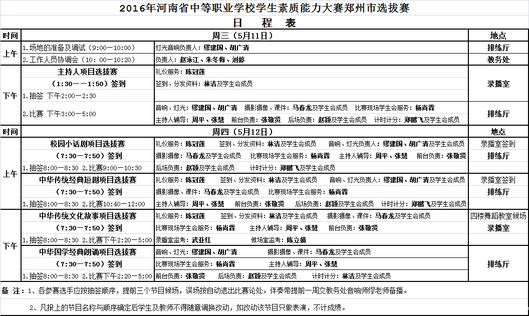 2016年河南省中等职业学校学生素质能力大赛郑州市选拔赛五项目日程表
