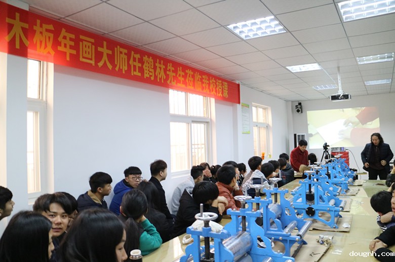 本次活动从2016年3月17日正式启动,3月24日结束,历时7天,特聘请开封著名木版年画大师任鹤林先生为我校师生授课,任鹤林先生1970年毕业于河南大学美术系,在木版年画方面有着很深的造诣,现为河南省美术家协会会员、中国民间文艺家协会会员、河南省工艺美术大师、河南省非遗(木版年画)传承人,开封年画博物馆馆长。在授课中,任老师结合课件讲解了开封木版年画的起源与发展、艺术的特点及表现形式等方面内容,并用作品欣赏、实操演示、师生互动、问题答疑等一系列形式带动了与会师生的学习热情。在听了任老师的精彩讲解之后,师生们纷纷拿起刻刀一展技艺。