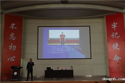 讲座过程中,张红学教授运用制作精美的图文资料,生动详细地向同学们讲解了几种常见的不良生活方式(如抽烟、酗酒、熬夜、久坐等)及其诱发的非传染性疾病(如驼背、虎腰、斜肩、糖尿病等)。张红学教授讲到,缓解以上病症最健康有效方式就是进行体育锻炼。张红学教授还亲切地与同学们进行互动,向大家示范正确的运动姿势,并告诉大家如何能在宿舍中做简单的锻炼,就能起到很好的效果。
