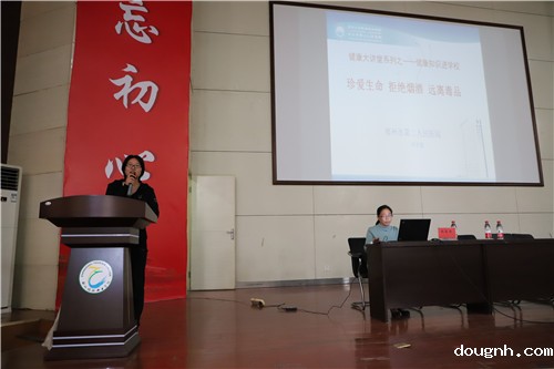 讲座过程中,田宏茹大夫首先运用制作精美的图文资料,生动系统地向同学们讲述了抽烟、酗酒及吸毒对个人、家庭、社会所带来的危害和防范新型毒品的有关知识,并结合毒品案例、深入浅出地讲解我国法律关于毒品违法犯罪的规定,有效地引导青少年远离毒品、自觉抵制毒品诱惑、积极参与禁毒斗争。最后向全体同学们发出呼吁:“时刻保持警惕,珍惜生命,远离毒品!”
