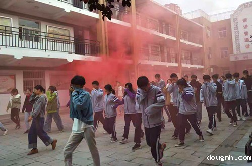 学生捂口鼻撤离教学楼