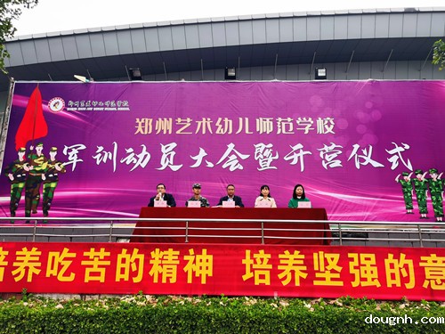 开营仪式在雄壮的国歌声、庄严的国旗下拉开序幕。之后,总教官代表全体教官做了动员讲话,并对学生提出了训练要求。学生代表随后上台发言,他们激昂的语言中透出他们坚定的训练信心和坚强的挑战意志。最后,李留群副校长、副校级干部都玉铭分别对承担这次任务的部队以及参加此次军训管理、服务的老师表示感谢,对参训的学生表示慰问。他们指出每个郑艺幼师学子都应有强烈的现代国防意识和奉献国防的坚定决心,以参加军训的实际行动践行社会主义价值观、为实现中国梦夯实基础。为了圆满完成本次军训任务,他们向全体学生提出了希望,希望同学们珍惜机会,以饱满的热情投入到军训中,努力学习和掌握基本军事知识和技能,增强国防意识和集体观念,磨练意志品格,提高适应能力,并把军训中的精神带到今后的学习生活中去,真正做到军训七天,受益一生。最后,他期待同学们能够接受挑战,圆满完成任务。