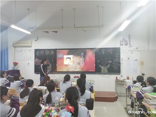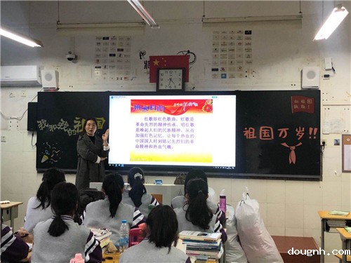 班会课上,老师和同学们精神饱满、引吭高歌,演唱了《我的祖国》《学习雷锋好榜样》《在北京的金山上》等红色歌曲,唱出当代青年学生对共产党、对祖国、对社会主义的深厚感情。班主任老师通过红色歌曲和相关影视作品对同学们进行了爱国主义教育,带领大家了解了抗日战争、解放战争、上甘岭战役、改革开放等重大历史事件,激发青年学子爱国热情、凝聚社会主义新时代的奋进力量。