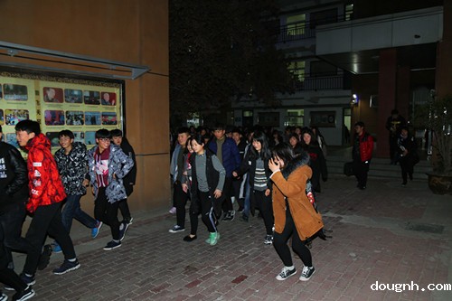 各位在校老师迅速引导教学楼内学生进行疏散,负责应急疏散指引的学生会学生立即到达指定岗位,配合老师们引导教室内、楼道内学生快速疏散,老师们带领学生弯着腰、猫着步,用手帕、毛巾等捂住口鼻,沿着学校指定的疏散通道前进,有序撤离到学校操场的安全地带,随即各任课教师清点人数,并层层向上汇报,全校近2000名师生全部安全疏散完毕,整个逃生过程迅速而有序,用时4分28秒。