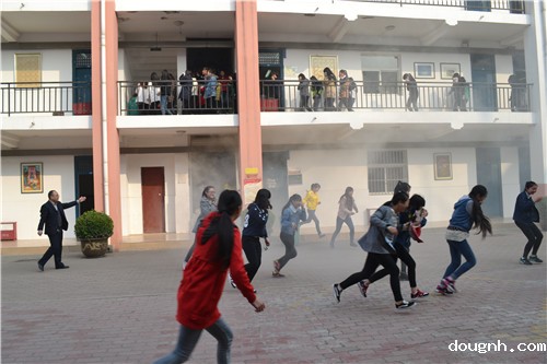 2014年11月11日上午,随着一声警报拉响,我校的紧急疏散演练正式拉开帷幕,随着浓烟滚滚而来,学生们纷纷捂住口鼻,在班主任的带领下有序撤离,安静而有序,校领导和学生处相关负责人严阵以待,保障每个学生能够快速安全的从班里撤离,确保了活动的安全性。