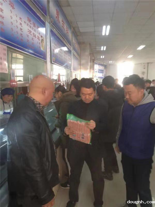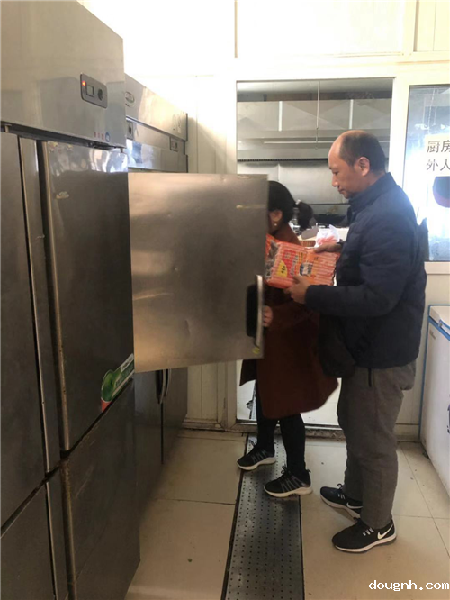 2019年3月14日,在学校副校长窦亮的带领下,总务处全体人员分别对老校区食堂和新校区食堂进行了食品安全检查。学校领导及总务处人员首先对食堂采购进行检查。学校食堂原材料由专人负责配送,收货均有进货验收记录单,供货商食品经营许可证、营业执照具全;随后副校长窦亮检查了米、面、油及冰箱内存放的火腿肠等,确保所有食品都在保质期内、供货商资质齐全;食品添加剂(发酵粉)有专人保管、专人登记、专柜存放;最后副校长窦亮又查看了食品留样,发现食品留样及时、登记及时。