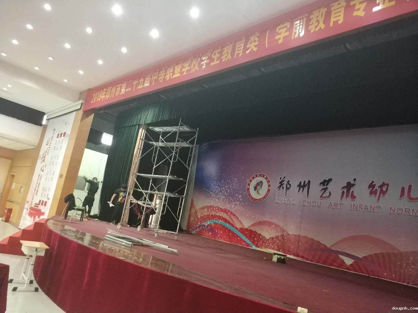 18新利app将于2019年4月22日举办郑州市第二十五届中等职业学校学生学前教育专业、美术专业、音乐专业技能大赛。为了保证赛场的顺利使用,总务处人员对赛场灯光、音箱、LED电子大屏进行检修,并整理幕布,打扫赛场卫生。总务处人员全力做好比赛的后勤保障工作。